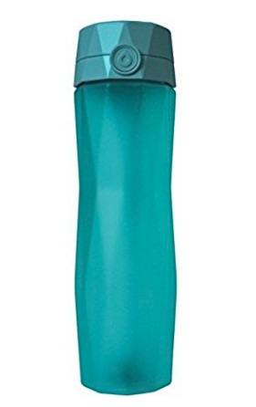 Hydrate Spark 2.0 is a very sleek looking water bottle and about the same size as your regular, standard water bottle holding up to 24 oz of water. The bottle comes in six different colors: black, green, pink, purple, teal, and white. The body of the bottle is make of BPA-free plastic with a diamond patterned design that matches the flip cap. While the bottle is made of plastic, I found it to be pretty grippy so you shouldn’t have to worry about it slipping out of your hands. There is a button on the lid that when pressed will “pop” the cap open so you can drink out of it. When you close it make sure you press it closed until you hear a “click”.