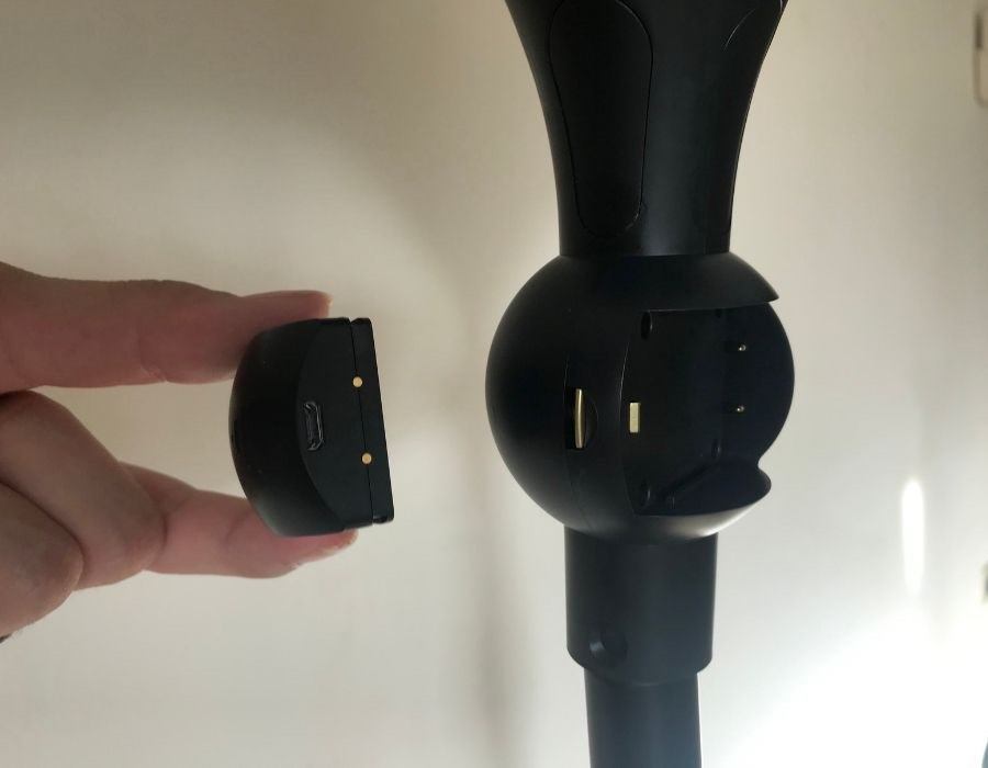 Battery/Tech: At the base of the reflex bag, there are LED indicator lights, and this is where the tech hardware and smart sensors are located. The back of the base is the battery that pops off and uses a MicroUSB cable to charge. The charging cable is included.